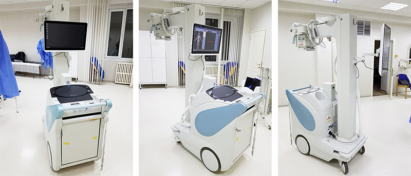 Das mobile Röntgensystem wird in der Regel in Notaufnahmen, Operationssälen und Krankenhausabteilungen eingesetzt. In Situationen, in denen der Patient nicht in einen Röntgenraum gebracht werden kann, kann dieses mobile Röntgengerät zum Patienten gebracht werden.
