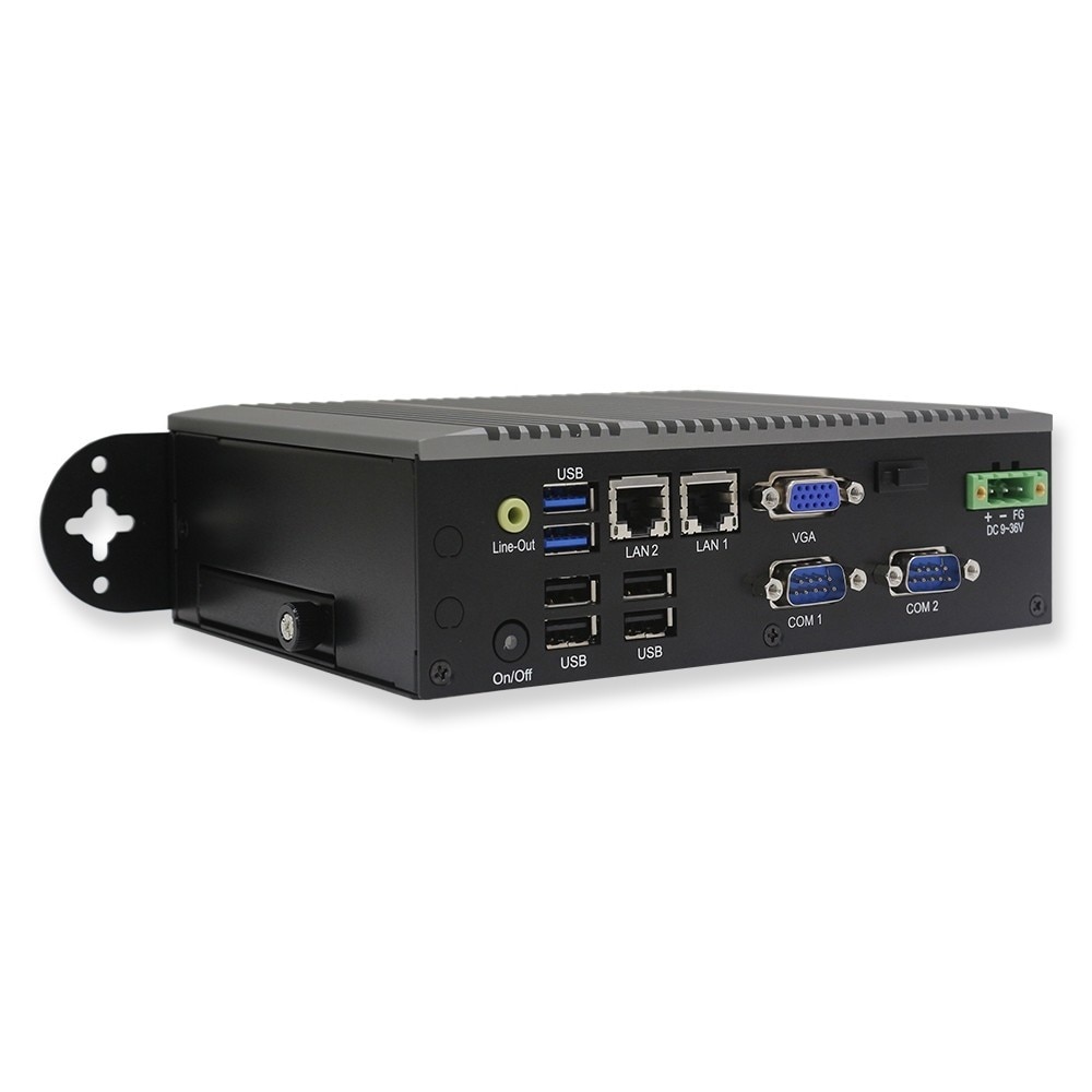 Der lüfterlose Boxcomputer TB-2945-DIN ist der Partner des TB-2945. Der Hauptunterschied ist, dass der TB-2945-DIN auf einer DIN-Schiene montiert werden kann, um Platz zu sparen und sich nahtlos in Ihre industrielle Umgebung zu integrieren. Das DIN-Schienen-Montagesystem macht die Installation zu einem Kinderspiel und ermöglicht es, industrielle Steuergeräte bequem nebeneinander zu montieren. Der TB-2945-DIN verfügt über einen leicht zugänglichen 2,5″ SATA2 Festplattenschacht, 6 USB-Anschlüsse und 2 Mini-PCIe Erweiterungssteckplätze. Dieser Box-Computer verfügt über einen Weitbereichsspannungseingang von 9V bis 36V DC, und das lüfterlose Kühlsystem ermöglicht den Betrieb in einem weiten Temperaturbereich von 0 bis 50 °C (-20 bis 60°C optional). Durch das ultraflache Design und die Wandmontage ist dieser Box-PC ideal für industrielle Steuerungs-, Fertigungs- und Maschinenautomatisierungsanwendungen.