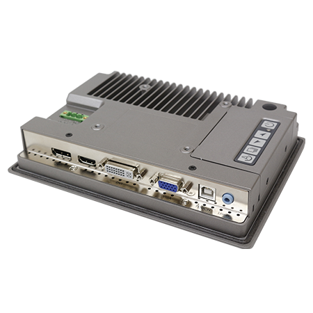 Das TD-45-07 ist ein vielseitiges industrielles Display, das in einen Ausschnitt in einem Gehäuse eingebaut oder an einem Arm, einem Ständer oder an einer Oberfläche aufgehängt werden kann. Bei der Panelmontage ist die Frontblende nach IP66 gegen Flüssigkeiten und Staub geschützt. Der TD-45-07 verfügt über einen Weitbereichseingang von 9~36VDC für Anwendungen, die eine eigene Gleichspannungsquelle verwenden. Für Anwendungen, die mit Wechselstrom betrieben werden, ist auch ein optionales AC/DC-Netzteil erhältlich. Dieses kompakte Display ist weniger als 8″ breit und wiegt nur 1 kg, und das gleiche Modell ist in Bildschirmgrößen bis zu 21,5″ erhältlich. Dieser Touchscreen-Monitor kann an jeden Computer angeschlossen werden, einschließlich eines robusten lüfterlosen Box-PCs oder eines anderen Touchscreen-Panel-PCs, so dass mehrere Benutzer denselben Computer über mehrere verschiedene Touchscreen-Schnittstellen steuern können.