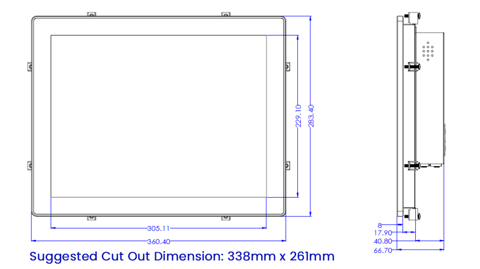 | Mounting Options | Panel Mount, VESA 100 Mount |