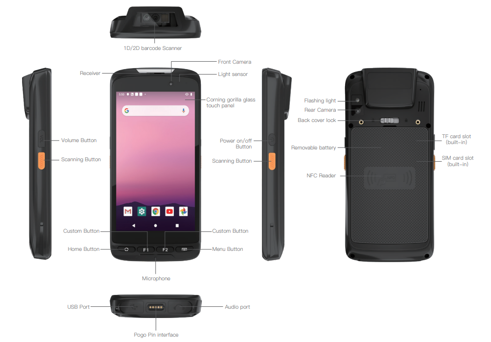 | Control Buttons | Audio Down, Audio Up, Home, Menu, Power Button, Scanner |