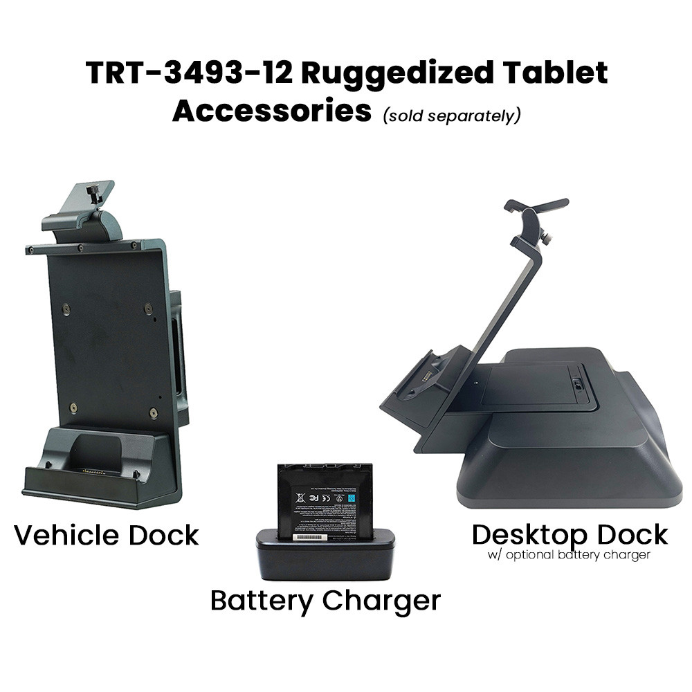 Das Teguar TRT-3493-12 steht für die ultimative Vielseitigkeit eines Tablets. Wie alle robusten Tablets von Teguar verfügt auch das TRT-3493-12 über ein Gorilla-Glas-Display und eine Fallhöhe von 4 Fuß aus jedem Winkel, so dass es selbst für die anspruchsvollsten Anwendungen geeignet ist. Das Besondere am TRT-3493-12 ist seine Modularität. Dank einer Vielzahl von Desktop- und Fahrzeug-Docking-Lösungen kann der TRT-3493-12 praktisch überall montiert oder aufbewahrt werden. Wenn Sie den TRT-3493-12 mit in den Einsatz nehmen möchten, können Sie die Handschlaufe auf der Rückseite oder einen Schultergurt verwenden, die beide im Lieferumfang des Tablets enthalten sind. Es können auch herausnehmbare Akkus mit Ladestationen geliefert werden, um die Betriebszeit zwischen den Ladevorgängen weiter zu verlängern.