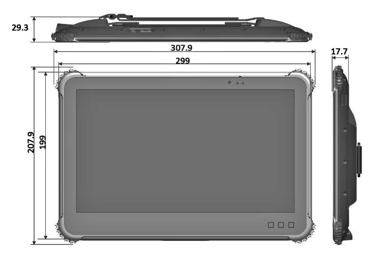 • Wiegt weniger als 2lbs (.9kg), das leichteste robuste Tablet in seiner Klasse
