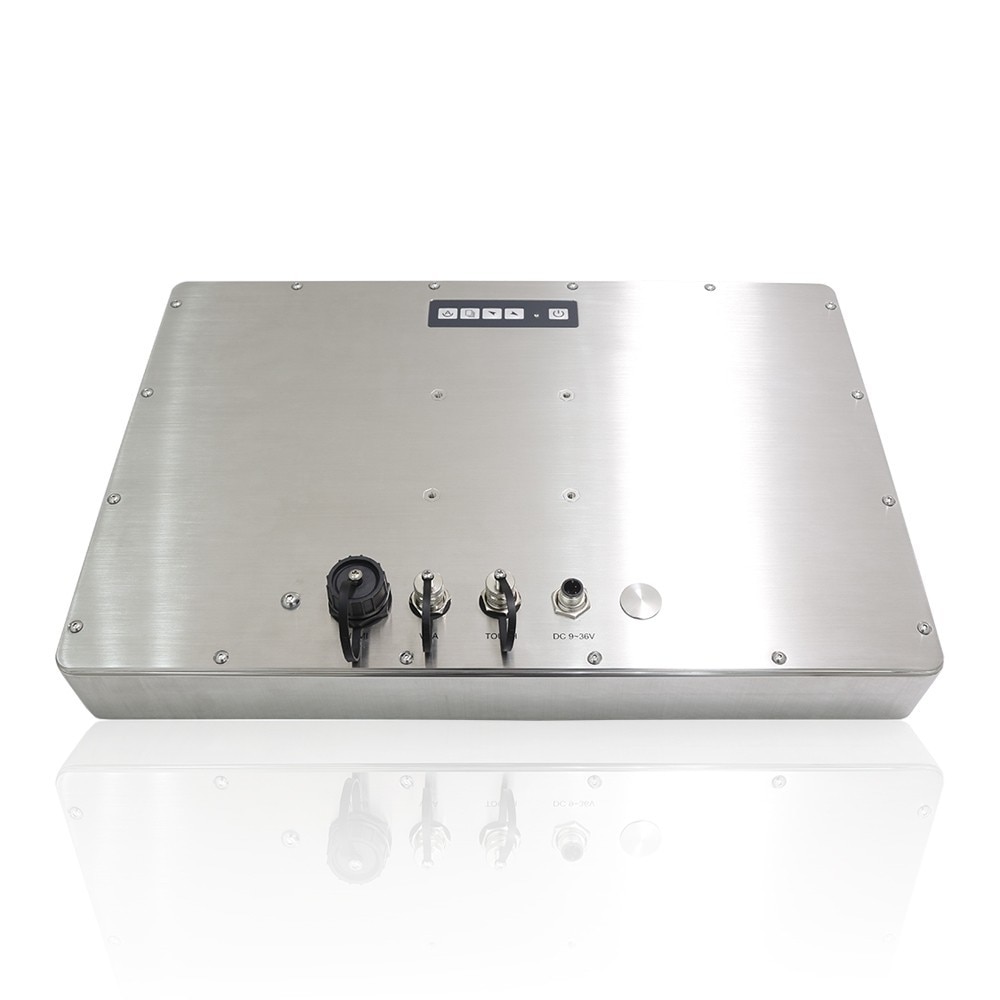 The TSD-45-16 widescreen monitor is the ideal solution for manufacturing environments exposed to water, moisture and even high-pressure wash downs. This unit is IP66/IP69K rated and NEMA 4x compliant. The stainless steel housing is grade 304, ensuring it will not rust, and comes with the option to upgrade to grade 316L stainless steel, needed in environments exposed to salt water. The thin profile and curved design are both aesthetically pleasing and easy to clean. The on-screen display (OSD) controls placed on the rear of the monitor allow for quick adjustments of display settings and the IOs are protected by M12 metal connectors, included with the unit. The TSD-45 series comes in screen sizes from 10” up to 24” and in various screen ratios, so you can choose the best configuration for your application.