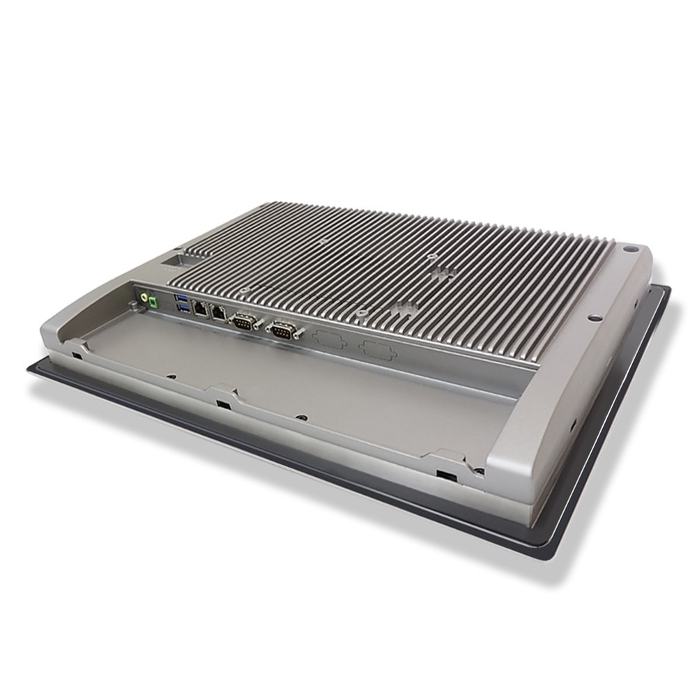 The TSP-5045-15 has a stainless steel front panel and aluminum back cover. The front bezel is IP66/IP69K compliant, so when panel mounted, this panel PC is an ideal waterproof solution for food and beverage manufacturing or industrial applications exposed to liquids, sprays or humidity. The TSP-5045-15 can also be VESA mounted and it has an aluminum back cover. This PC has an Intel Skylake Core i3/i5 processor and supports Windows 10 IoT. The TSP-5045 series is available in screen sizes from 12” – 22”