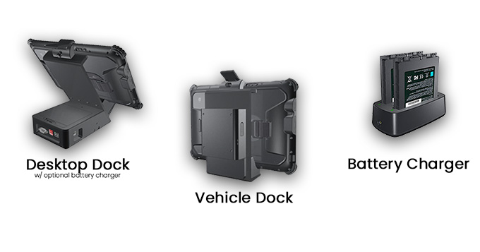 One of the most exciting aspects of the TRT-3493-12 is the lineup of accessories that complement this tablet. The vehicle dock is ideal for stationing your tablet securely in a vehicle, while the desktop dock is great for drop-and-go charging. Both docks have multiple inputs and outputs, including USB 3.0, HDMI 1.3, Giga LAN, a PoweredUSB 24V, and more.
